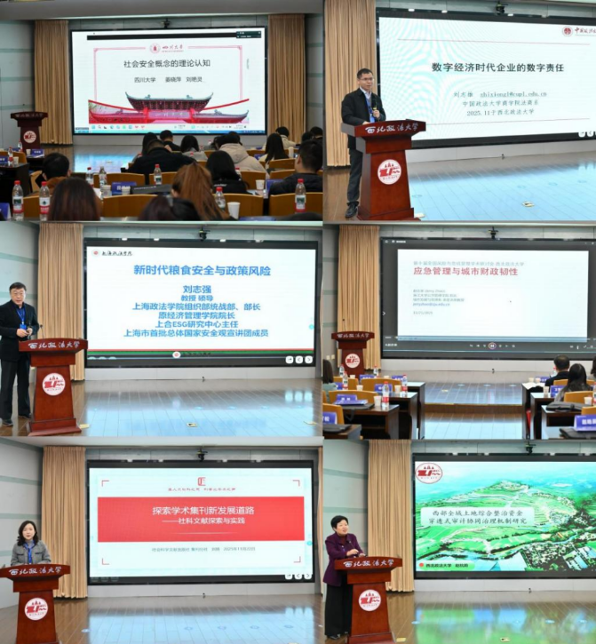 会议的主题报告阶段,分别由无码av 院长李晓宁、副院长杨柳青主持。四川大学城市治理研究院院长姜晓萍教授作题为《社会安全概念的理论认知》主题报告;中国政法大学无码av 副院长刘志雄教授作题为《数字经济时代企业的数字责任》主题报告;上海政法无码av党委常委刘志强教授作题为《新时代粮食安全与政策风险》主题报告;浙江大学公共管理无码av院长赵志荣教授作题为《城市财政韧性和地方债务管理》主题报告;社会科学文献出版社刘扬编辑作题为《探索学术集刊新发展道路》主题报告;无码av 赵杭莉教授作题为《西部全域土地综合整治资金穿透式审计协同治理机制研究》主题报告。