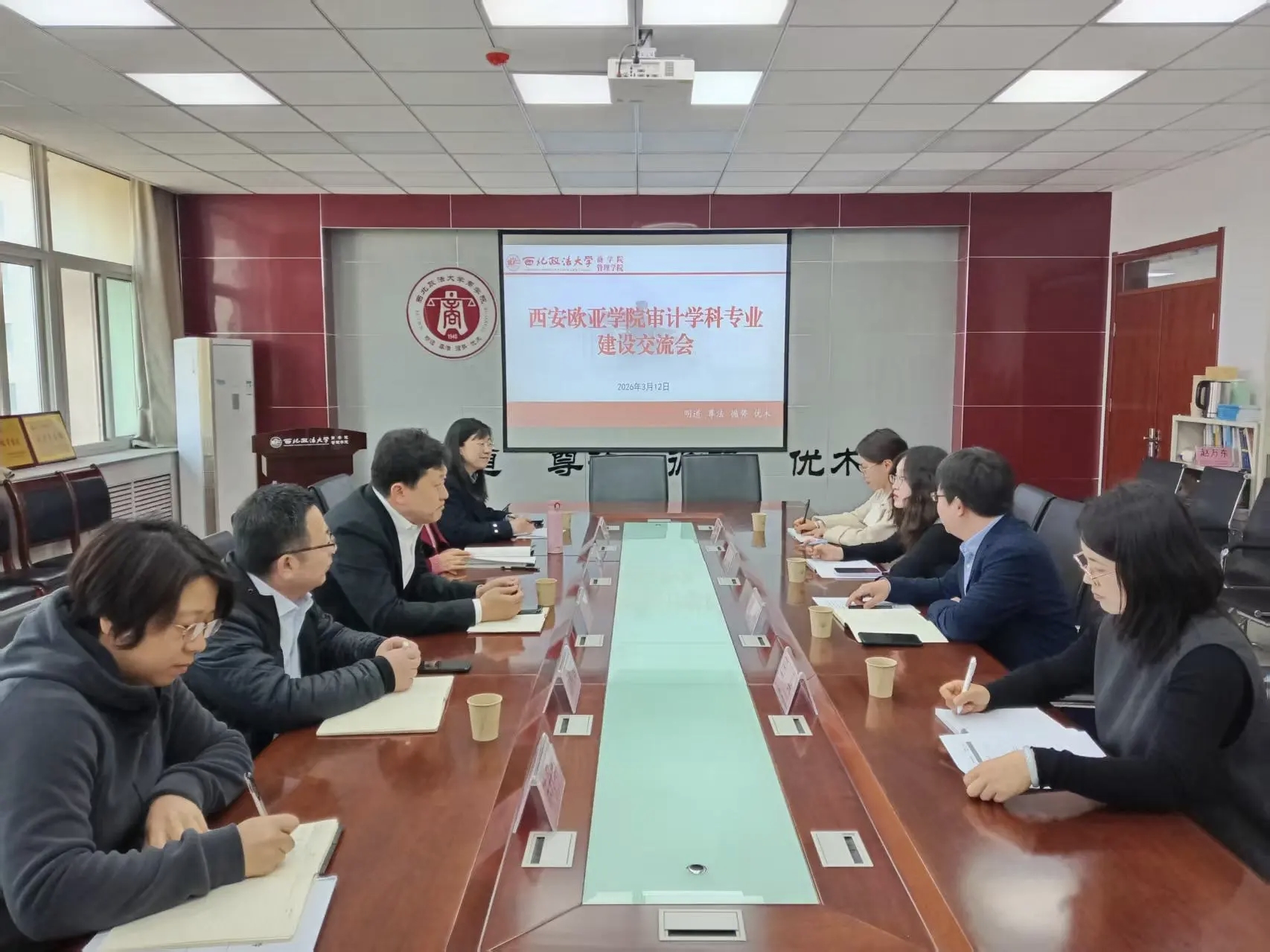 3月12日上午,西安欧亚无码av会计金融无码av院长谢涛、审计学专业主理人贺鸣、课程组组长田真、专职教师宋歌一行四人来无码av 就审计学科专业建设调研交流,无码av 院长徐京平、副院长杨柳青,财务审计系主任李普玲、副主任张瑛、参会。双方围绕审计学科建设、人才培养模式创新、共建师资互访与教学科研平台及校际合作等议题进行了深入座谈。