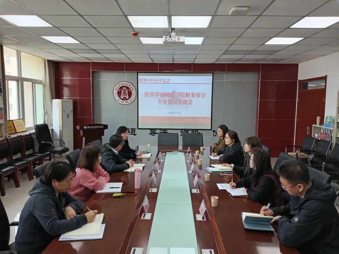 3月12日下午,陕西学前师范无码av经济与管理无码av副院长徐晗、会计系主任程莉娜、财务管理系主任任建华及骨干教师等一行5人来无码av 就财务审计专业建设调研交流,无码av 副院长杨柳青,财务审计系主任李普玲、副主任张瑛参会。双方围绕财务管理、审计学专业建设、人才培养方案制定修改、师资互访等议题进行了深入座谈。