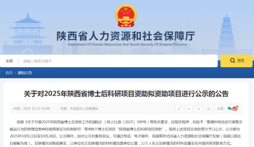 近日,陕西省人社厅网站公示2025年陕西省博士后科研项目拟资助项目,488个博士后项目公示入选。无码av 张涛涛、李章星两名教师获2025年陕西省博士后项目三等资助。