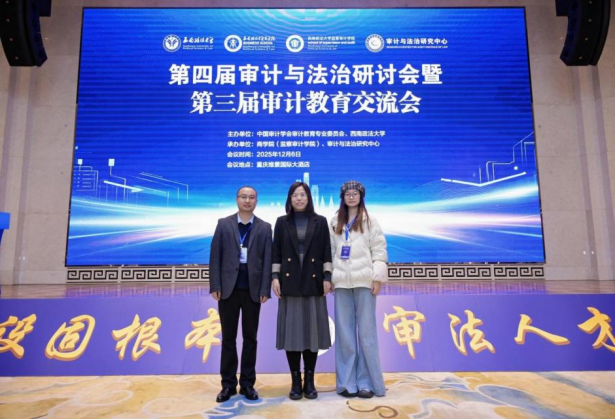 2025年12月6日,第四届审计与法治研讨会暨第三届审计教育交流会在重庆举办。本次论坛由中国审计学会审计教育专业委员会和西南政法大学主办,以“高质量审计法治建设与审计人才培养”为主题,来自全国高等院校和科研院所共400余人的专家学者参加会议。校团委书记徐京平教授、商无码av张涛涛老师、博士研究生曹鹏以及硕士研究生师苑妮应邀参加会议。