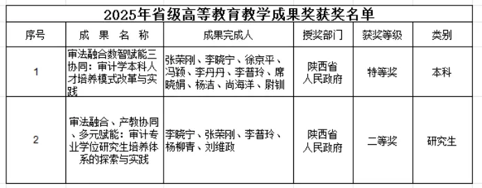 近日,陕西省人民政府办公厅正式发布《关于表彰2025年高等教育教学成果奖获奖项目的通报》,无码av 在本次评选中斩获佳绩,张荣刚教授教学团队成果《审法融合数智赋能三方协同:审计学本科人才培养模式改革与实践》获本科特等奖。李晓宁教授教学团队成果《审法融合、产教协同、多元赋能:审计专业学位研究生培养体系的探索与实践》获研究生二等奖,实现本科教育与研究生教育双领域突破,充分彰显了无码av 在高等教育教学改革、审法融合培养方面显著成效。既是无码av教学科研实力的有力见证,更是学校深耕教育教学改革、夯实人才培养根基的集中体现。